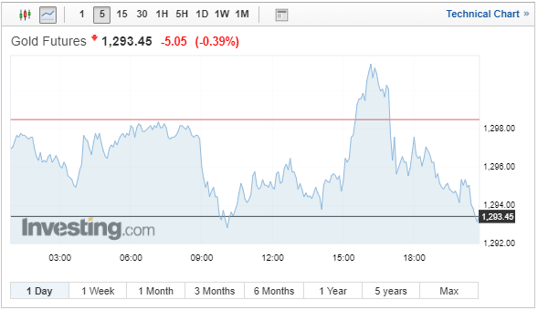 Η τιμή του χρυσού παραδόσεως Ιουνίου έκλεισε με πτώση 0,3% ή 4,30 δολ., στα 1.294,20 δολ. ανά ουγγιά