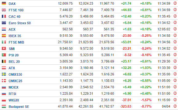 Με ήπια άνοδο έκλεισαν σήμερα (5/4/2019) τα κυριότερα ευρωπαϊκά χρηματιστήρια, καθώς οι επενδυτές παραμένουν επικεντρωμένοι στις εξελίξεις που αφορούν τόσο τις εμπορικές διαπραγματεύσεις ανάμεσα σε ΗΠΑ και Κίνα όσο και την αποχώρηση της Βρετανίας από την Ευρωπαϊκή Ένωση.