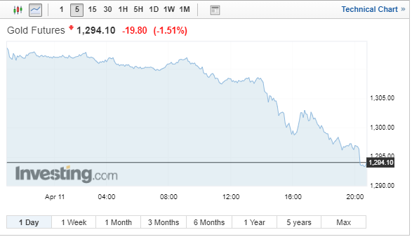 Με βαριές απώλειες έκλεισε σήμερα (11/4/2019) ο χρυσός, καταγράφοντας τη μεγαλύτερη πτώση και το χαμηλότερο κλείσιμο από την αρχή του Απριλίου, στον απόηχο των πρακτικών που δημοσίευσε χθες η Ομοσπονδιακή Τράπεζα των ΗΠΑ (Federal Reserve, Fed).