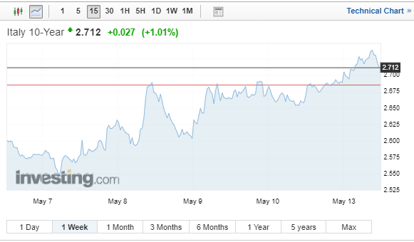 Πιέσεις δέχονται σήμερα (13/5/2019) τα κρατικά ομόλογα της Ιταλίας, ενώ οι αποδόσεις των ομολόγων των χωρών του πυρήνα της Ευρωζώνης καταγράφουν οριακές μεταβολές, καθώς οι επενδυτές στρέφονται στα ασφαλή «καταφύγια», λόγω της κλιμάκωσης του εμπορικού πολέμου ΗΠΑ - Κίνας.