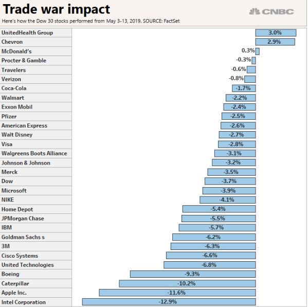 Οι αμερικανικοί δείκτες υπέστησαν χθες (13/5) ένα εκτεταμένο sell-off, με τους Dow Jones και S&P 500 να κλείνουν με απώλειες 2,4% -η χειρότερή τους επίδοση από τις αρχές Ιανουαρίου- και τον Nasdaq να «βυθίζεται» κατά 3,4% -η μεγαλύτερη ημερήσια πτώση του 2019.