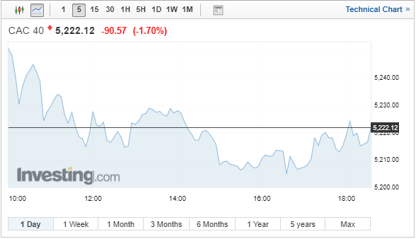 Ο FTSE 100 στο Λονδίνο σημείωσε πτώση 1,15% στις 7.185,30 μονάδες, ενώ ο CAC 40 στο Παρίσι έκλεισε με απώλειες 1,71% στις 5.222,12 μονάδες.