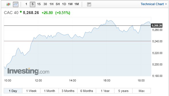 Ο FTSE 100 στο Λονδίνο σημείωσε άνοδο 0,41% στις 7.214,29 μονάδες, ενώ ο CAC 40 στο Παρίσι έκλεισε με κέρδη 0,51% στις 5.268,26 μονάδες.