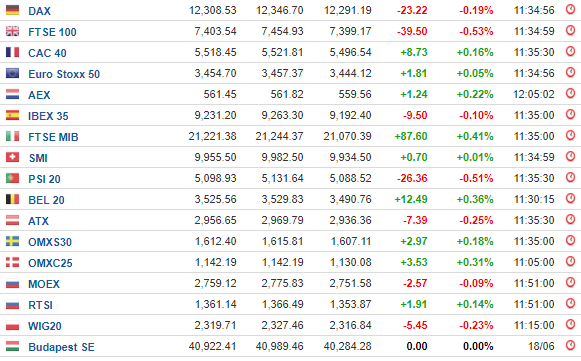 Με μεικτά πρόσημα και οριακές μεταβολές έκλεισαν σήμερα (19/6/2019) τα ευρωπαϊκά χρηματιστήρια, καθώς οι επενδυτές αναμένουν την ολοκλήρωση της συνεδρίασης της Ομοσπονδιακής Τράπεζας των ΗΠΑ (Federal Reserve, Fed) αργότερα εντός της ημέρας, καθώς και την αυριανή (20/6) συνεδρίαση της Bank of England (ΒοΕ).