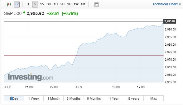 Σε ιστορικά υψηλά έκλεισαν σήμερα (3/7/2019) και οι τρεις κύριοι δείκτες της Wall Street, εν μέσω των προσδοκιών για μια μείωση των επιτοκίων από την Ομοσπονδιακή Τράπεζα των ΗΠΑ (Federal Reserve, Fed) αργότερα αυτόν τον μήνα.