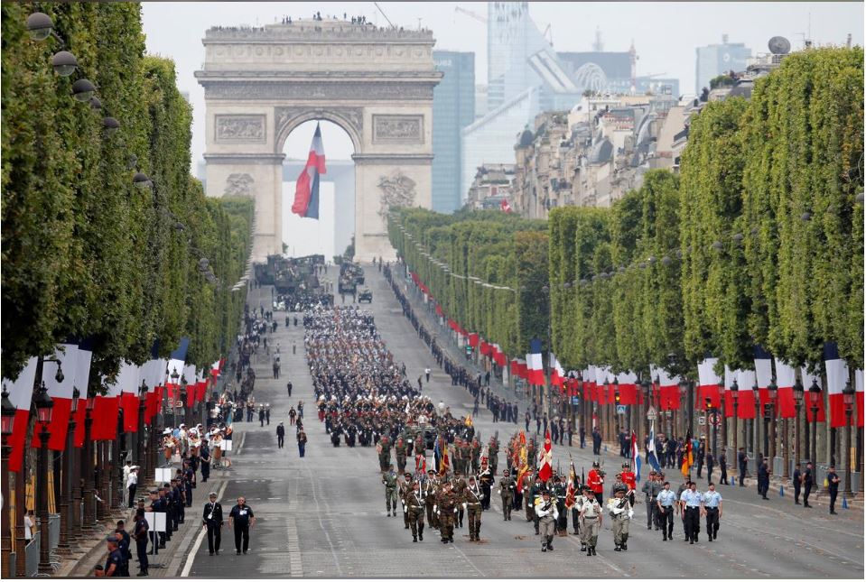 Με την καθιερωμένη στρατιωτική παρέλαση στο Παρίσι φέτος η Γαλλία γιορτάζει την Ημέρα της Ανεξαρτησίας της τιμώντας την ευρωπαϊκή στρατιωτική συνεργασία.