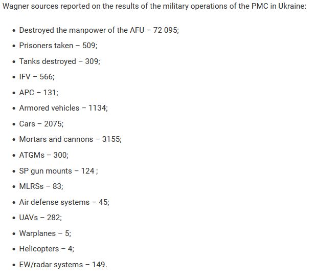 Η ηγεσία της μισθοφορικής ομάδας έδωσε στη δημοσιότητα την λίστα με τις ουκρανικές απώλειες σε αριθμούς: