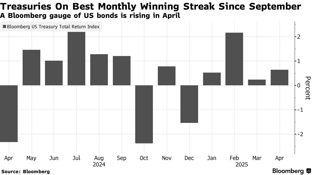 Πίσω στα ομόλογα του αμερικανικού δημοσίου, οι έντονες εκροές ξένου κεφαλαίου που παρατηρήθηκαν στις αρχές Απριλίου επιβραδύνθηκαν επίσης καθώς η αναταραχή υποχώρησε, σύμφωνα με στοιχεία του BNY iFlow.