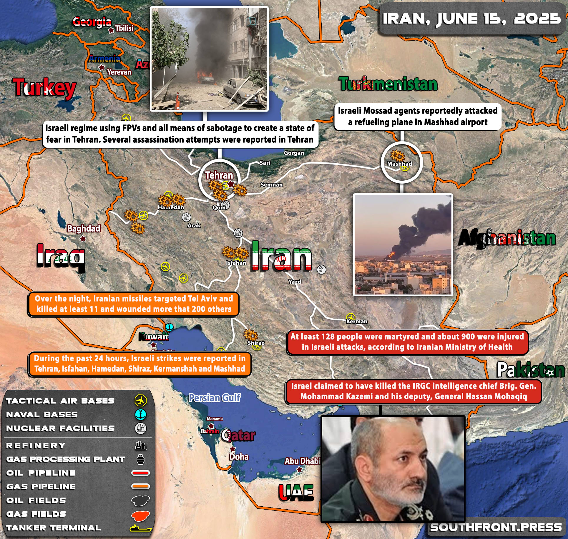 Οι ισραηλινές δυνάμεις σκότωσαν τον επικεφαλής των μυστικών υπηρεσιών του Σώματος των Φρουρών της Ισλαμικής Επανάστασης (IRGC) του Ιράν, Mohammad Kazemi, και τον αναπληρωτή του Hassan Mohaqiq, όπως είχε δηλώσει νωρίτερα το Σάββατο 15 Ιουνίου ο Benjamin Netanyahu στο Fox News