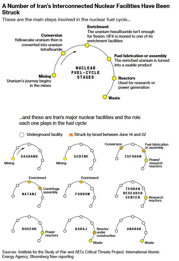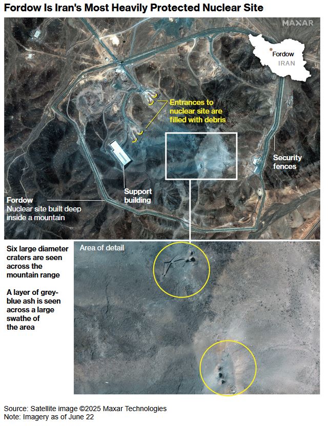 Ως γνωστόν, ο Trump δήλωσε ότι οι βαριά οχυρωμένες τοποθεσίες «καταστράφηκαν ολοσχερώς» αργά το Σάββατο, αλλά -σύμφωνα με το Bloomberg- ανεξάρτητη ανάλυση δεν έχει ακόμη επιβεβαιώσει αυτόν τον ισχυρισμό. Αντί να επιφέρουν μια γρήγορη νίκη, τα χτυπήματα έχουν περιπλέξει το έργο της παρακολούθησης του ουρανίου και της διασφάλισης ότι το Ιράν δεν θα κατασκευάσει ένα όπλο, σύμφωνα με τρία άτομα που παρακολουθούν το πυρηνικό πρόγραμμα της χώρας.