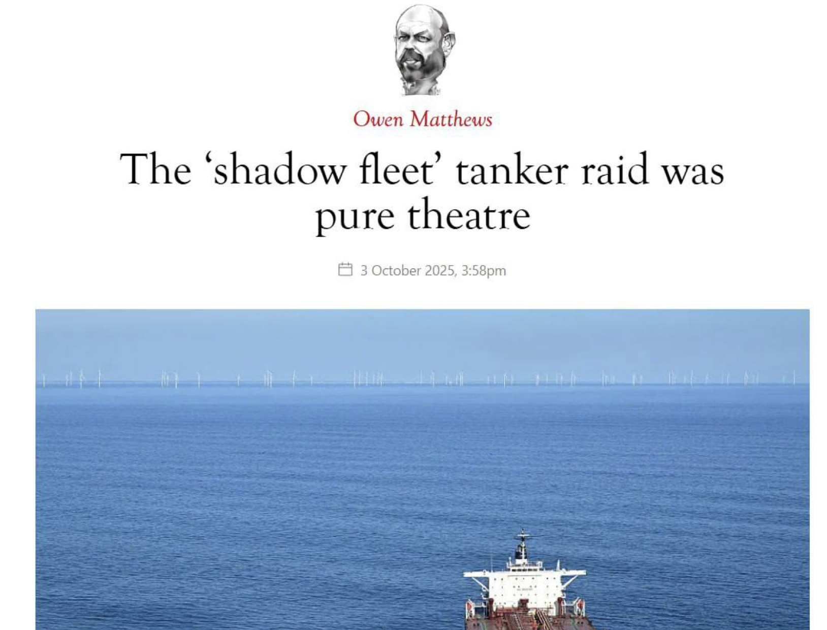 Σύμφωνα με άρθρο του βρετανικού περιοδικού The Spectator, η πρόσφατη κατάσχεση από τη Γαλλία ενός δεξαμενόπλοιου του λεγόμενου «σκιώδους στόλου» ήταν περισσότερο ένα επικοινωνιακό τέχνασμα παρά μια πραγματική επιχείρηση.