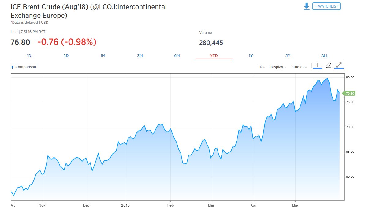Παράλληλα νέα αύξηση κατέγραψαν οι πλατφόρμες εξόρυξης πετρελαίου στις ΗΠΑ, όπως προκύπτει από στοιχεία που ανακοίνωσε σήμερα (1/6/2018) η Baker Hughes.