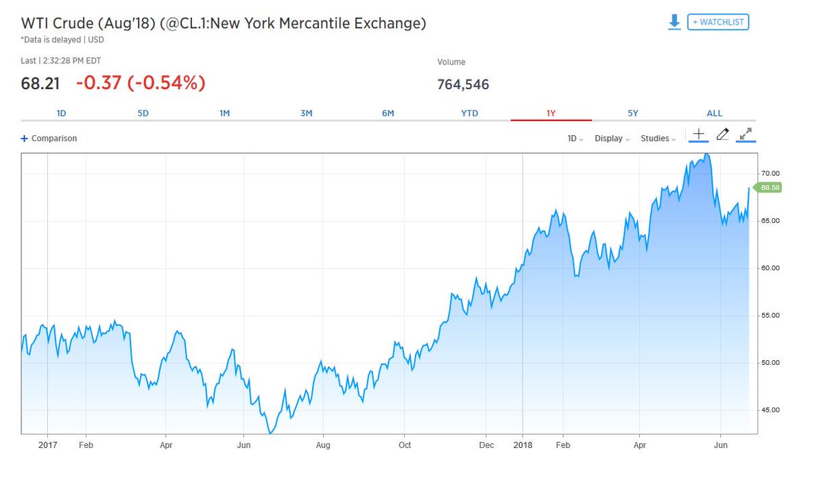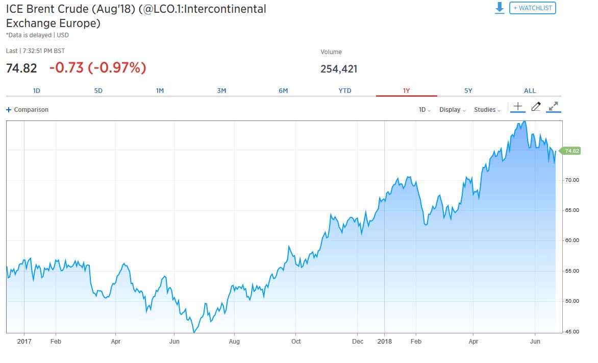 Αποτέλεσμα το προθεσμιακό συμβόλαιο λήξης Αυγούστου 2018 του Brent να υποχωρήσει άνω του 1% και να διαμορφωθεί στο επίπεδο των 74,6 δολαρίων το βαρέλι.