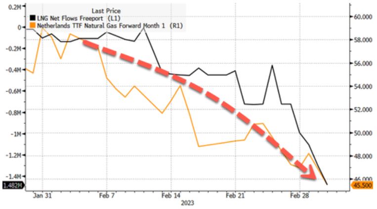 Ενώ η αγορά φυσικού αερίου των ΗΠΑ ανησυχεί κυρίως για την υψηλή παραγωγή και τις επακόλουθες επιπτώσεις ενός ήπιου χειμώνα στην αποθήκευση, η επιστροφή του Freeport είναι ένα όφελος για την Ευρώπη καθώς πλησιάζει την περίοδο αναπλήρωσης αποθήκευσης τους επόμενους μήνες.