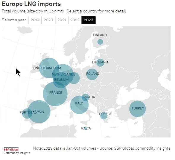 Εξαιτίας των παραπάνω ενώ η ροή φυσικού αερίου από τον ρωσικό αγωγό προς την ΕΕ μειώθηκε το 2022, αρκετές ευρωπαϊκές χώρες σημείωσαν ρεκόρ αγορών ρωσικού LNG πέρυσι.