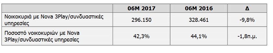 Στο τέλος του 1ου εξαμήνου του 2017 , τα νοικοκυριά με Nova3Play/συνδυαστικές υπηρεσίες της Forthnet, ανήλθαν στα 296,2 χιλιάδες.