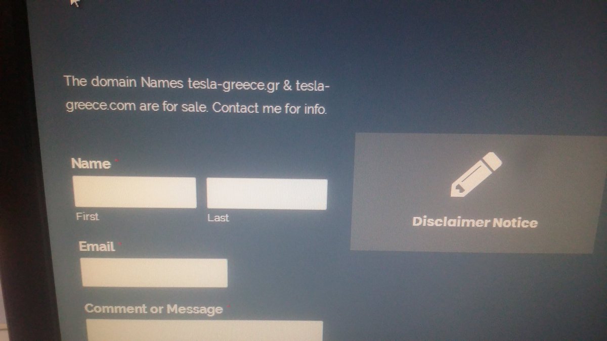 Έρευνα στο διαδίκτυο αποκαλύπτει ότι η αναζήτηση ιστοσελίδας με την επωνυμία Tesla Greece.gr είναι κατοχυρωμένη και μάλιστα είναι προς πώληση.