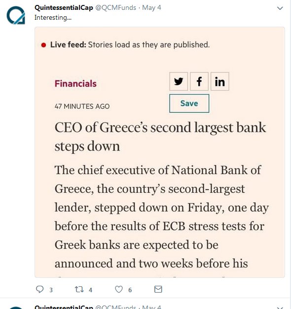 Το fund δεν παρέλειψε να σχολιάσει και τις εξελίξεις στην Εθνική Τράπεζα, αναφορικά με την παραίτηση του διευθύνοντος συμβούλου, γράφοντας: «Ενδιαφέρον…»