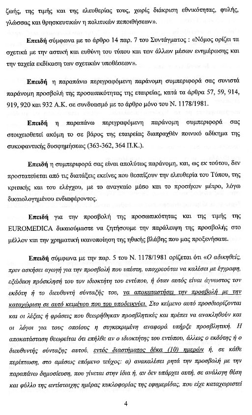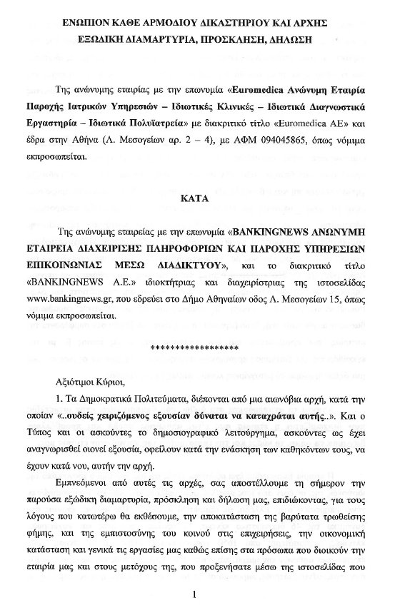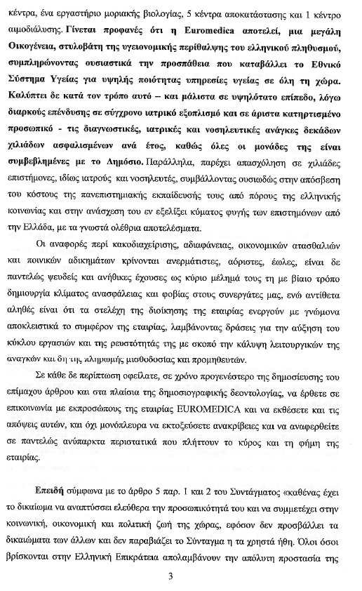 Το εξώδικο της Euromedica