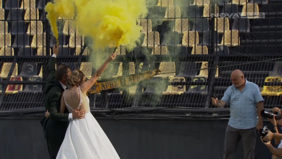 Στο «Κλεάνθης Βικελίδης» επέλεξε να παντρευτεί ένα ζευγάρι, χαρίζοντας όμορφες στιγμές πριν την έναρξη της αναμέτρησης του Άρη με τον ΟΦΗ.