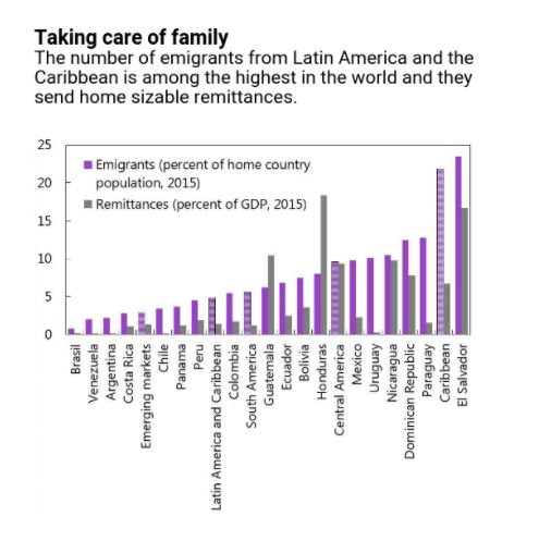 Όπως αναφέρεται στην έκθεση του ΔΝΤ, πολλοί άνθρωποι από τη Λατινική Αμερική και την Καραϊβική ζουν και εργάζονται στο εξωτερικό.