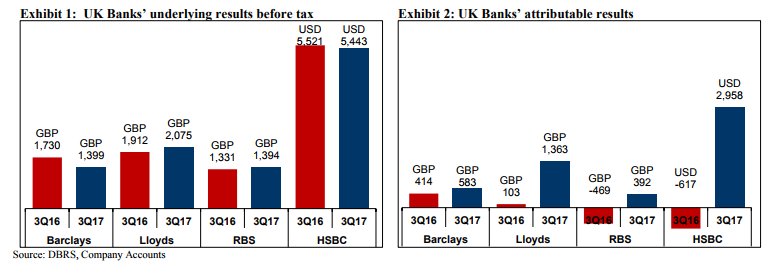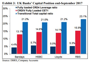 Τα οικονομικά αποτελέσματα του 9μήνου 2017 απέδειξαν πως οι μεγάλες τράπεζες του Ηνωμένου Βασιλείου παραμένουν ισχυρές, παρά τις προκλήσεις που επιφέρει το επικείμενο Brexit, σχολιάζει σε έκθεσή της η DBRS, κάνοντας λόγο για καλή ποιότητα ενεργητικού και κεφαλαιακή βάση, αλλά και χαμηλά ποσοστά μη εξυπηρετούμενων δανείων.