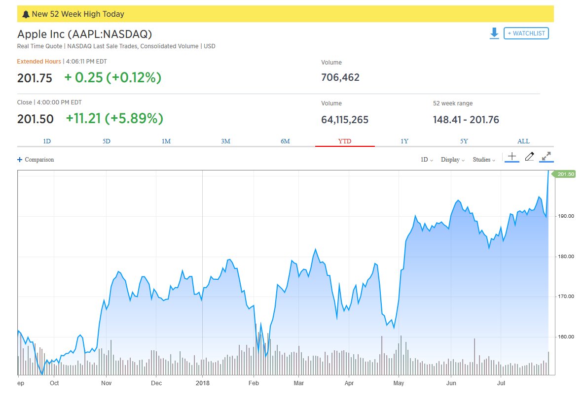 Θα πρέπει να σημειωθεί ότι η κεφαλαιοποίηση της Apple βρίσκεται μία ανάσα από το ένα τρισ. δολάρια, καθώς η μετοχή της βρίσκεται σε νέο υψηλό 52 εβδομάδων.