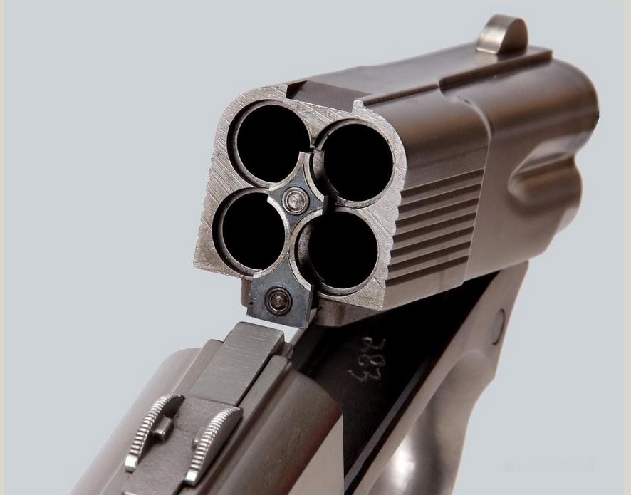 Αυτό το σύστημα σε μικρογραφία μετέφερε στο πιστόλι COP. Με την πρώτη ματιά μοιάζει σαν δύο πιστολάκια Derringer σε διάταξη σούπερ ποζέ, τα οποία έχουν συγκολληθεί σε μια κοινή λαβή. Ένας μοχλός στην κορυφή των κανών εκτελεί ταυτόχρονα χρέη οπίσθιου στοχάστρου, ενώ όταν σύρεται προς τα πίσω απασφαλίζει το κλειδί των κανών. Οι κάνες περιστρέφονται γύρω από ένα πίρο κοντά στα στόμια τους, αποκαλύπτοντας τις θαλάμες. Ενας εξωστήρας με έμβολο σπρώχνει τα φυσίγγια εν μέρει έξω από τις θαλάμες, έτσι ώστε να απορρίφθούν. Ο σχεδιασμός είναι απλός και οικείος σε όποιον έχει χρησιμοποιήσει ποτέ κυνηγετικό δίκανο.