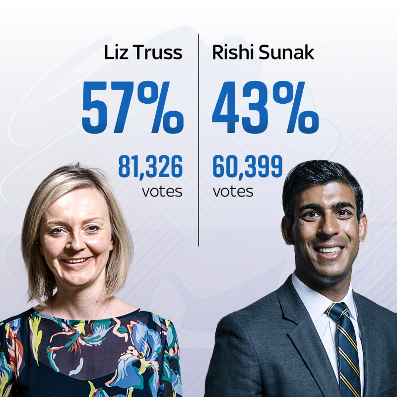 Συγκεκριμένα, τα περίπου 180.000 μέλη των Συντηρητικών, τα οποία αποτελούν μόλις το 0,3% των ενήλικων Βρετανών με δικαίωμα ψήφου, ανέτρεψαν επί της ουσίας την απόφαση των βουλευτών των Συντηρητικών, οι οποίοι σε όλες τις εσωκομματικές διαδικασίες, έβγαζαν πρώτο και με διαφορά τον Sunak.