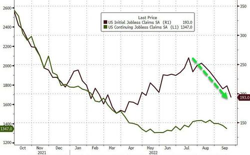 Την ίδια στιγμή, ο αριθμός των Αμερικανών που υπέβαλαν αίτηση για επιδόματα ανεργίας για πρώτη φορά μειώθηκε κάτω από τις 200 χιλιάδες την περασμένη εβδομάδα (17 Σεπτεμβρίου 2022) φτάνοντας τις 193 χιλιάδες - Πρόκειται ουσιαστικά για τον χαμηλότερο αριθμό αιτήσεων που καταγράφονται από τον Απρίλιο του 2022.