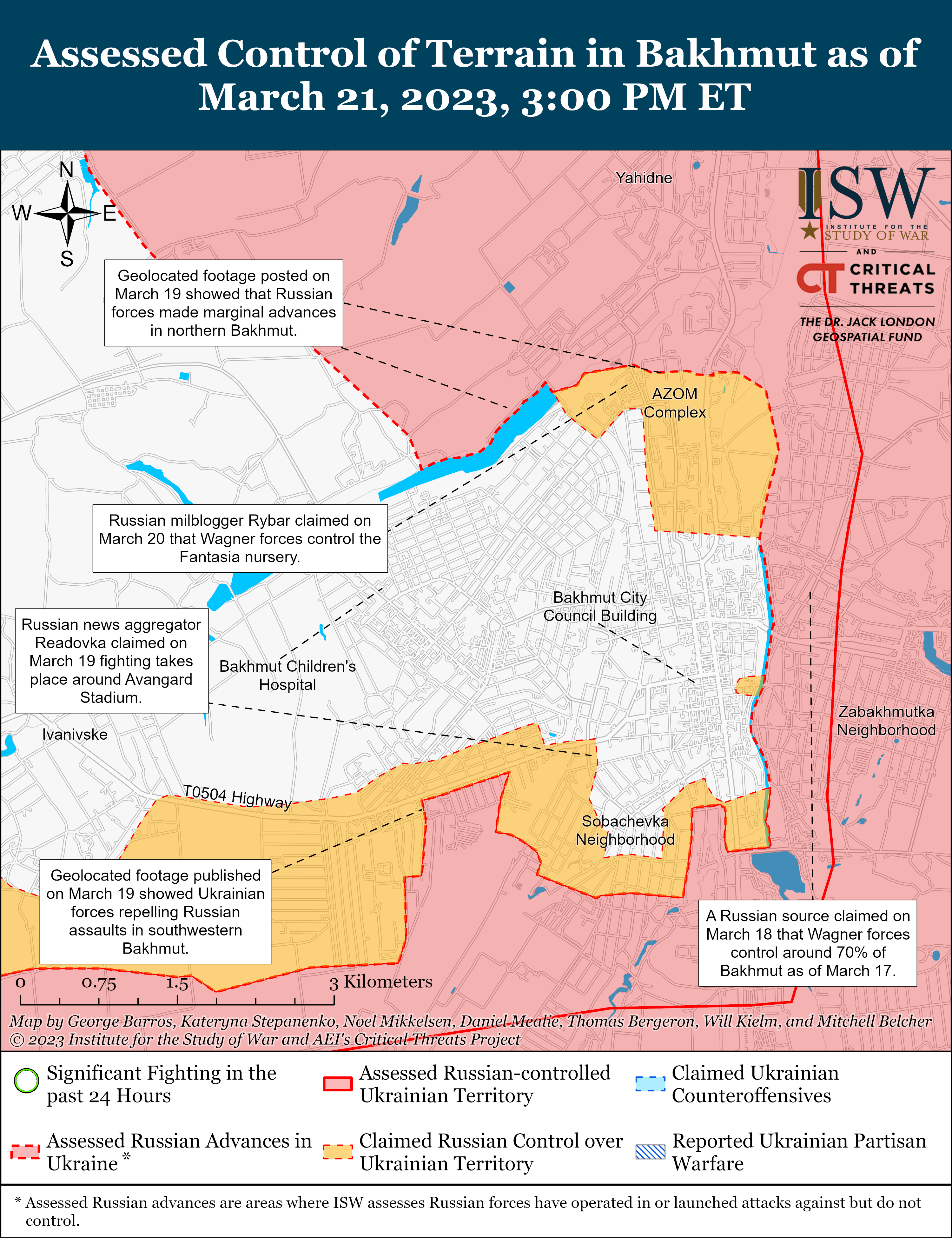 Στα βόρεια του Bakhmut, το φυτώριο και το εργοτάξιο Fantasia τέθηκαν υπό ρωσικό έλεγχο.