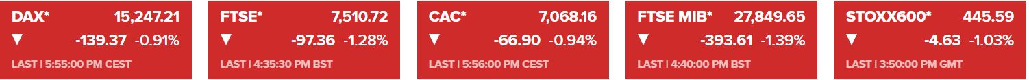 Στο Μιλάνο, ο δείκτης FTSE MIB υποχώρησε κατά 1,39% στις 27.849 μονάδες