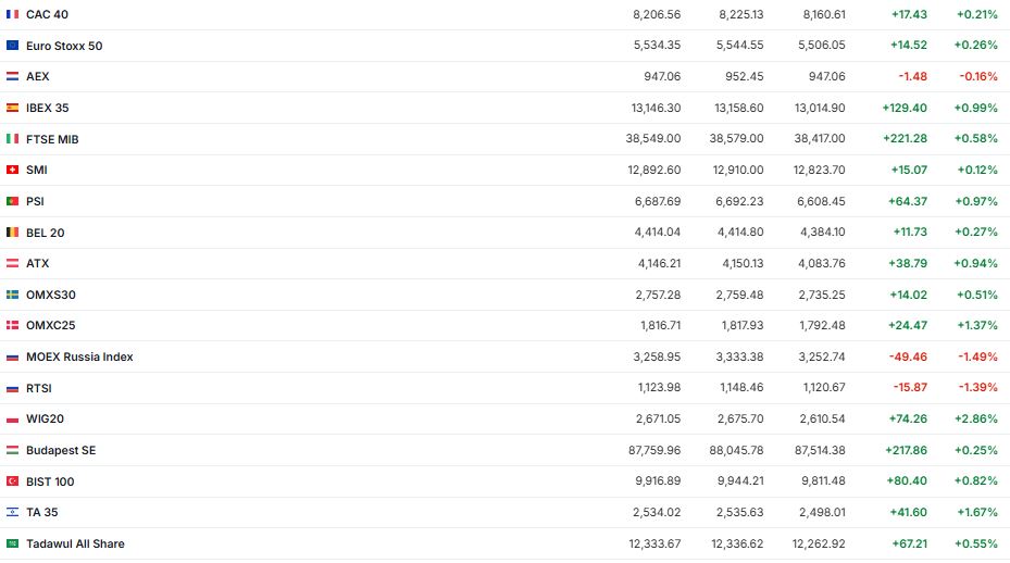 Σε αυτό το πλαίσιο, ο πανευρωπαϊκός δείκτης Stoxx 600 ενισχύθηκε κατά 0,32% στις 555,65 μονάδες (+1,7% για την περασμένη εβδομάδα), σε νέο ιστορικό υψηλό.