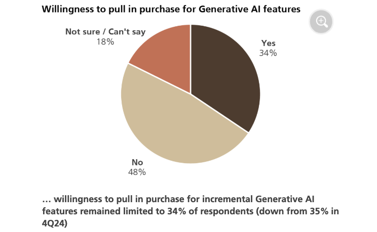Μόνο το 34% των ερωτηθέντων θα απέσυρε τις αγορές προς τα εμπρός ή θα πλήρωνε επιπλέον για τα χαρακτηριστικά της τεχνητής νοημοσύνης...