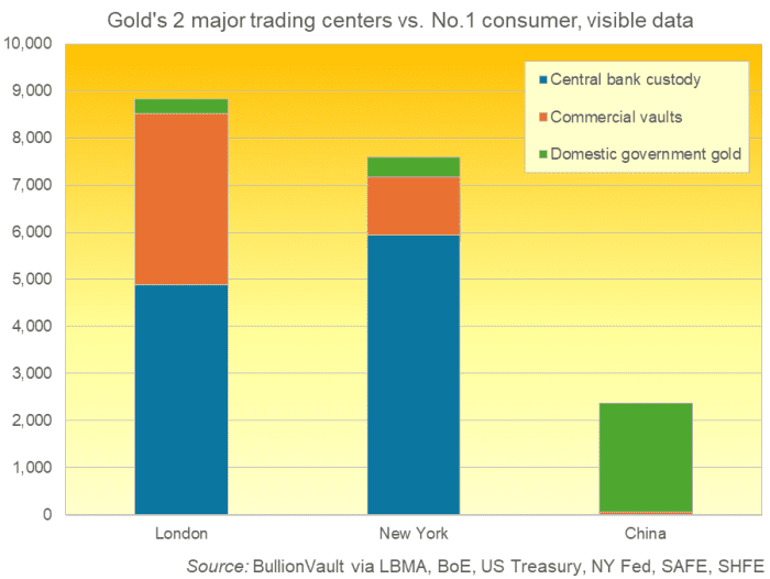 Το υπόλοιπο συνάγεται από διαφορές στα εμπορικά ισοζύγια, ιδίως στις εξαγωγές ράβδων 400 ουγγιών (που χρησιμοποιούνται συνήθως από κεντρικές τράπεζες) από το Λονδίνο προς την Ασία.