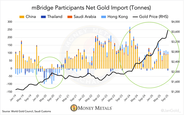 Σε συνδυασμό με την αύξηση των συναλλαγματικών αποθεμάτων σε χρυσό, αυτό αποτελεί το πρώτο βήμα ώστε να διαμορφωθεί η υποδομή για μια νομισματική μονάδα των BRICS που θα βασίζεται στο πολύτιμο μέταλλο,