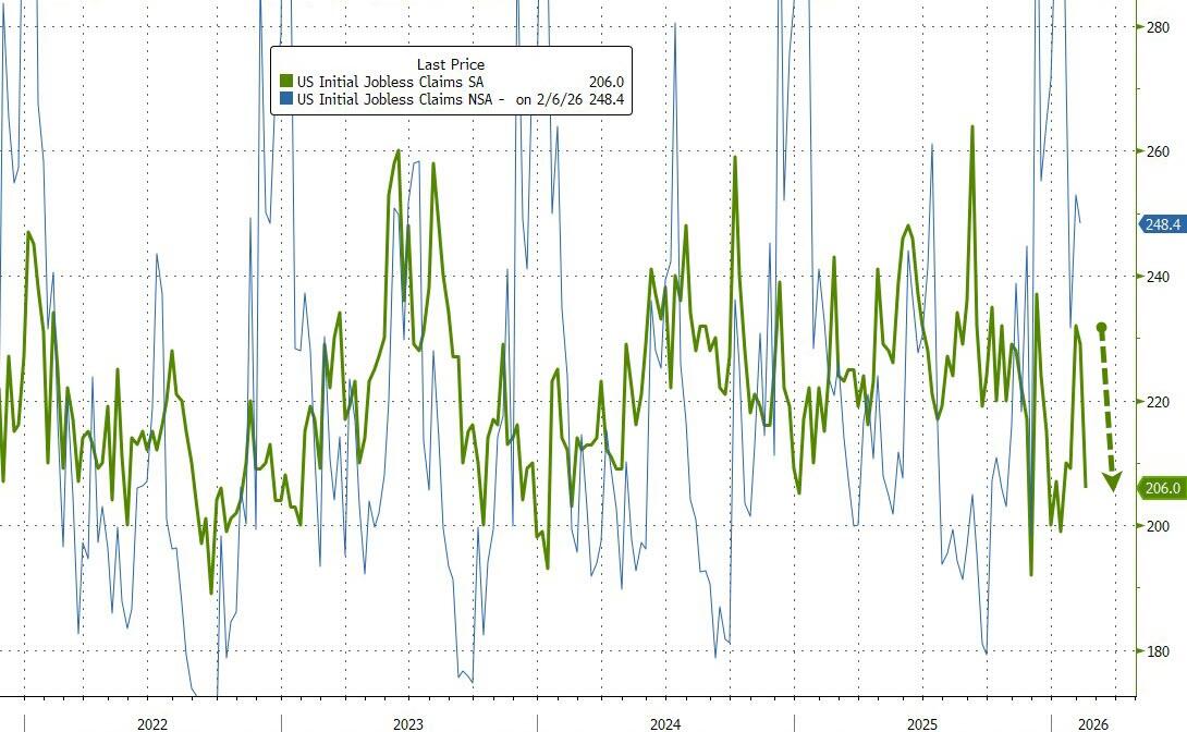 Το προκαταρκτικό εποχικά προσαρμοσμένο ποσοστό ασφαλισμένης ανεργίας για την εβδομάδα που έληξε στις 7 Φεβρουαρίου διαμορφώθηκε στο 1,2%, αμετάβλητο σε σχέση με την προηγούμενη εβδομάδα.