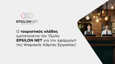 Ο τουριστικός κλάδος εμπιστεύεται τον Όμιλο EPSILON NET για την εφαρμογή της ψηφιακής κάρτας εργασίας 07/02/2025 - 13:36 - Δελτία Τύπου