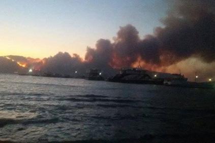 Πρώτα εκκενώθηκαν το γηροκομείο και το κέντρο υγείας της περιοχής, ενώ οι 300 λουόμενοι επιβιβάστηκαν σε βάρκες που έφτασαν στην παραλία για να φτάσουν διά θαλάσσης σε ασφαλές σημείο.