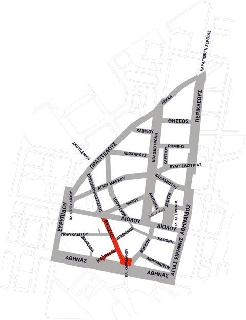Πρόκειται για δύο οδούς κάθετες στην οδό Αθηνάς, τις οδούς, Βύσσης και Καϊρη, δύο χαρακτηρισμένοι πεζόδρομοι, που αρχής γενομένης από το Σάββατο 1η Απριλίου, γίνονται στην πράξη πεζόδρομοι.