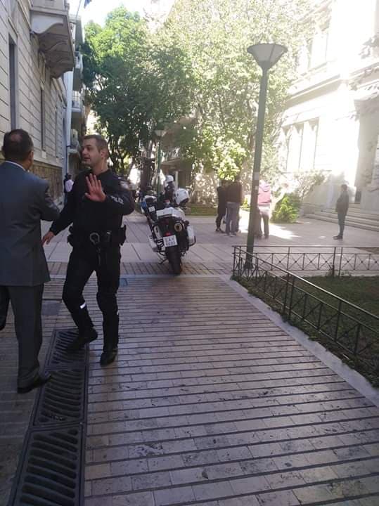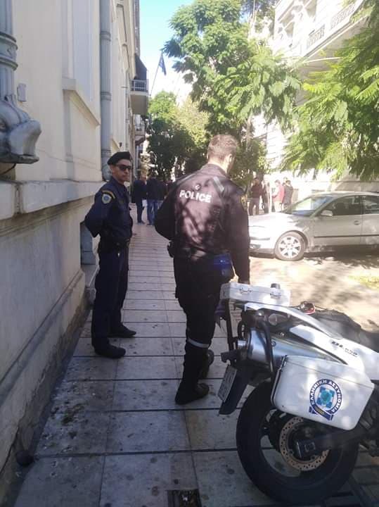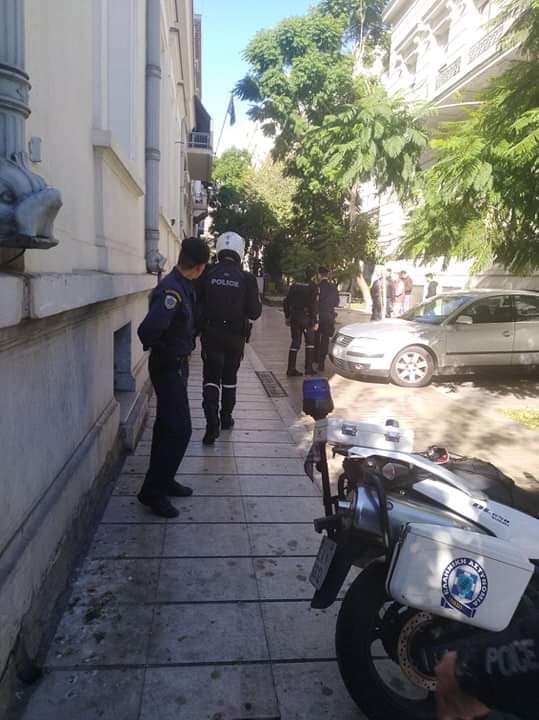 Οι περίπου 70 υπάλληλοι του υπουργείου βρέθηκαν στο προαύλιο του υπουργείου ενώ στο σημείο έσπευσαν δυνάμεις της αστυνομίας και πυροτεχνουργοί.