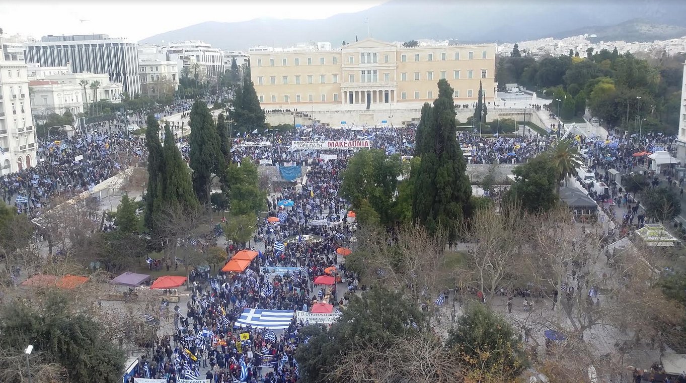 Εντυπωσιακή η προσέλευση των διαδηλωτών από ολόκληρη την Ελλάδα στο Σύνταγμα στο συλλαλητήριο ενάντια στη Συμφωνία των Πρεσπών.