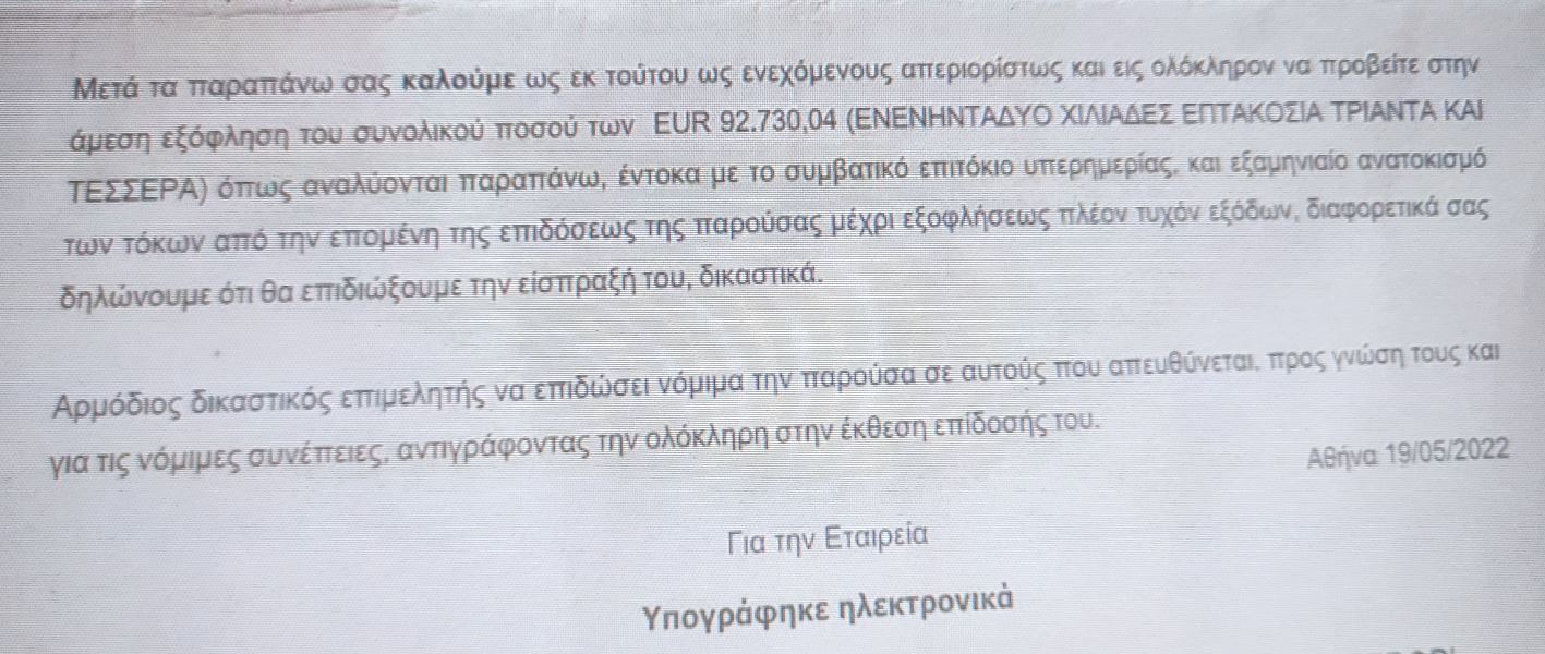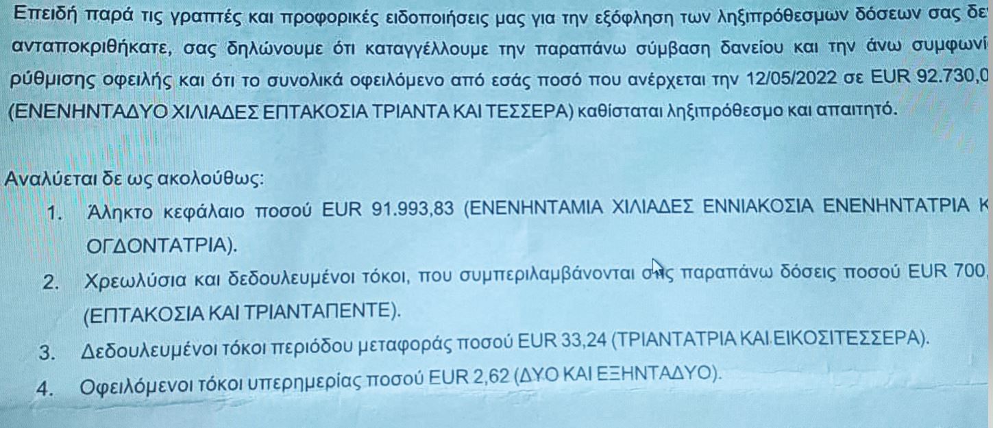 Για 2,62 ευρώ και κάτι ψηλά το Fund Mexico Finance DAC τινάζει στο αέρα της ζωής ενός ανθρώπου, ο οποίος καλείται να αποπληρώσει το δάνειο εδώ και τώρα με το συνολικό ανεξόφλητο ποσό να φτάνει τα 92.730 ευρώ.