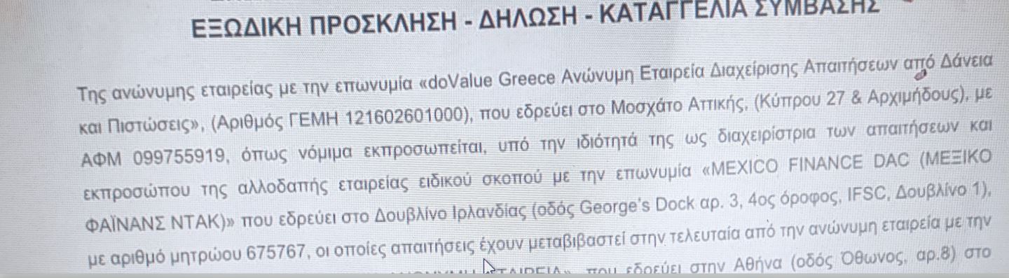 Οι διαχειριστές από το Δουβλίνο αποφάσισαν να καταγγείλουν τη σύμβαση του δανείου, διότι ο δανειολήπτης δεν πλήρωσε μερικά ευρώ.