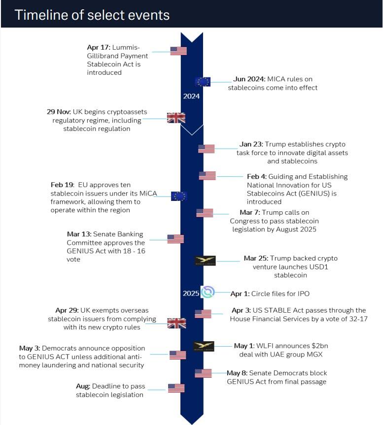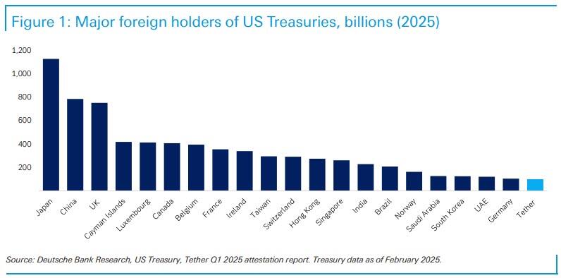 Η Tether κατατάσσεται πλέον μεταξύ των μεγαλύτερων κατόχων ομολόγων των ΗΠΑ παγκοσμίως, και με τα κρυπτονομίσματα σε USD να αντιπροσωπεύουν πάνω από το 99% της συνολικής κεφαλαιοποίησης της αγοράς stablecoin , ο νόμος GENIUS επισημοποιεί τον ρόλο των εκδοτών σταθερών κρυπτονομισμάτων ως οιονεί αμοιβαία κεφάλαια χρηματαγοράς.