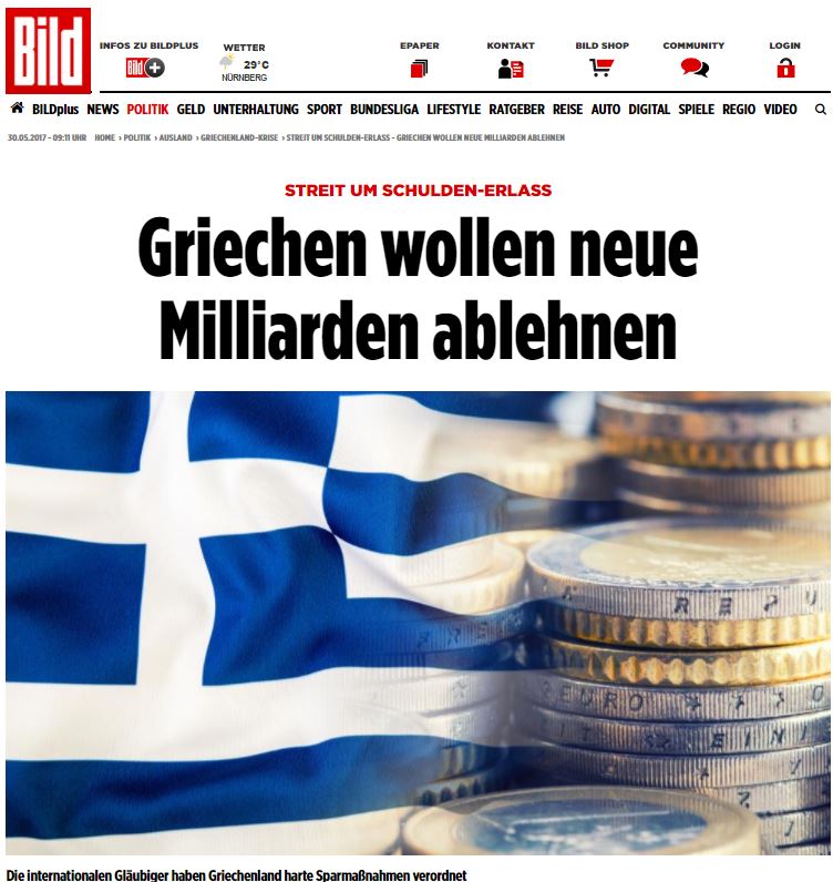 Μετά τον κυβερνητικό εκπρόσωπο Δημήτρη Τζανακόπουλο και ο υπουργός Οικονομικών Ευκλείδης Τσακαλώτος, διαψεύδει το δημοσίευμα της Bild.