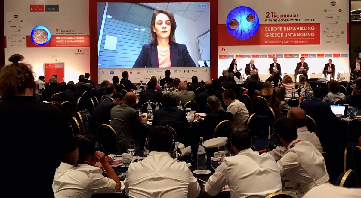 Αυτό επανέλαβε η εκπρόσωπος του Διεθνούς Νομισματικού Ταμείου, D. Velculescu, κατά την παρέμβασή της στο συνέδριο του Economist, που πραγματοποιείται στην Αθήνα, τονίζοντας μεταξύ άλλων ότι στόχος και του Ταμείου είναι να επανέλθει το ελληνικό χρέος σε βιώσιμη τροχιά.