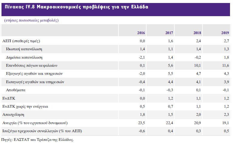 Το αρνητικό μεταφερόμενο αποτέλεσμα από το τελευταίο τρίμηνο του 2016 αποδυναμώνει την πρόβλεψη ανάπτυξης για το 2017 από 2,5% σε 1,6%.