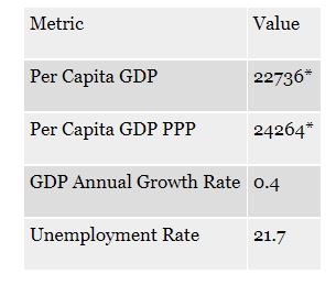 Ωστόσο, το σημερινό Ακαθάριστο Εγχώριο Προϊόν της Ελλάδας είναι πολύ χαμηλότερο από το ιστορικό υψηλό των 30.054,89 δολαρίων το 2007.