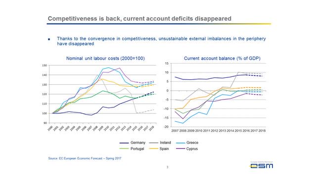 Οι χώρες πρέπει επίσης να προχωρήσουν σε κινήσεις αποκατάστασης του ανταγωνισμού της οικονομίας τους, κάτι που σημαίνει ότι θα πρέπει να δοθεί τέλος σε καθεστώτα παροχής υπερβολικών μισθών και να προωθηθούν μέτρα μείωσης του ονομαστικού κόστους ανά μονάδα εργασίας.